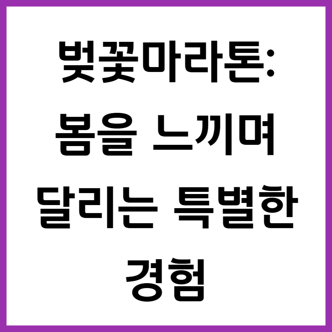 벚꽃마라톤은 단순한 마라톤이 아니라, 자연을 만끽하며 운동을 즐길 수 있는 특별한 행사입니다. 봄의 정취를 느끼며 달리는 이 대회는 건강을 증진시키는 동시에 마음의 힐링을 제공합니다. 매년 많은 사람들이 벚꽃마라톤에 참가하며, 봄날의 아름다움을 더욱 특별하게 만끽하고 있습니다. 올 봄, 벚꽃마라톤에 도전하여 건강과 행복을 함께 느껴보세요!