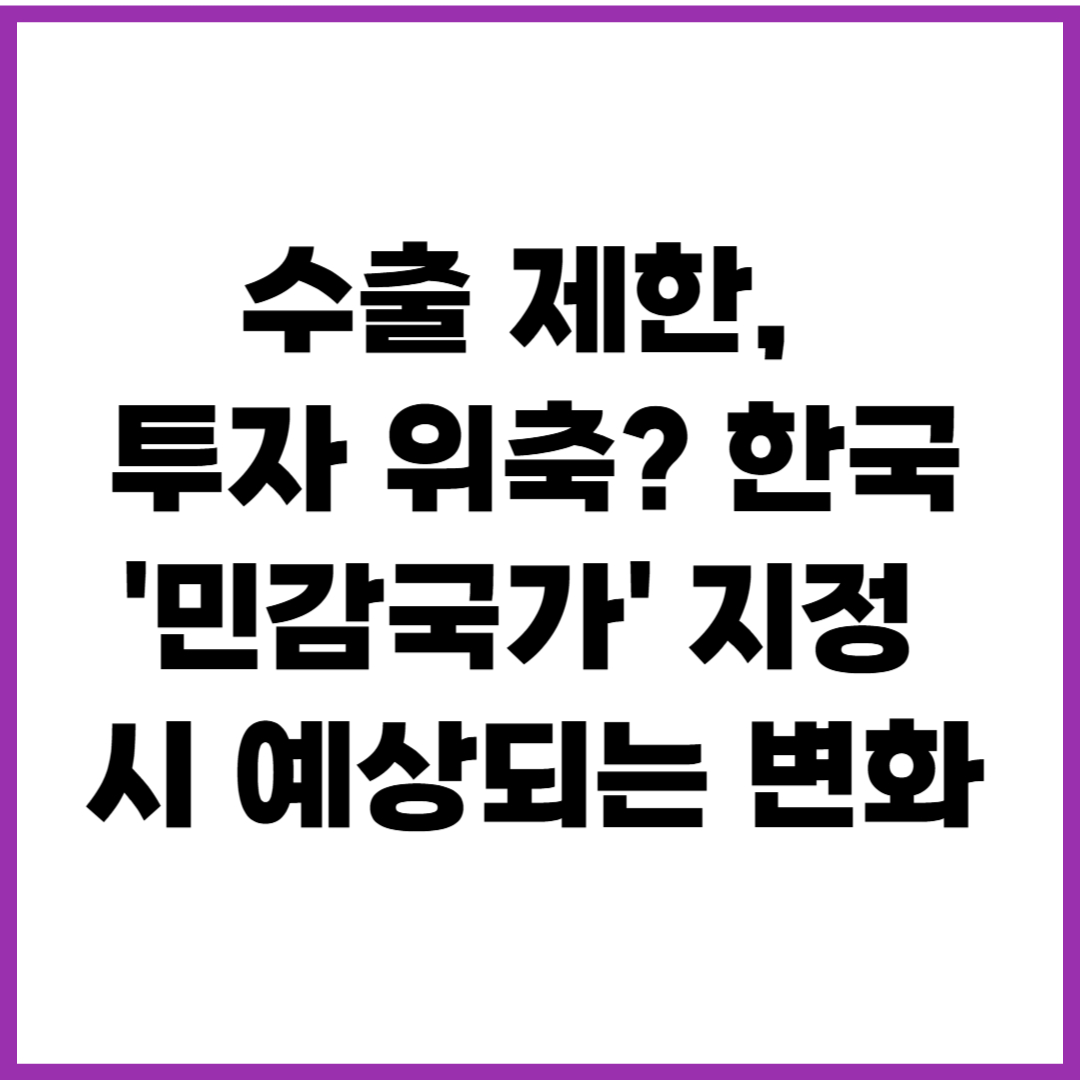 한국이 민감국가로 지정되면, 가장 큰 우려 중 하나는 수출 제한입니다. 여러 국가들이 한국에 대한 수출 규제를 강화할 가능성이 있습니다. 특히, 한국은 반도체, 디스플레이, 자동차 등 첨단 산업에서 세계적인 경쟁력을 자랑하고 있지만, 주요 원자재나 기술을 수입에 의존하고 있습니다. 이와 같은 수출 제한은 한국의 산업 경쟁력에 심각한 영향을 미칠 수 있습니다.