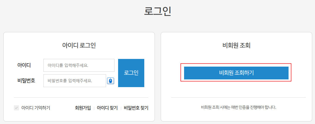 - 본인인증 진행 (카드인증, 아이핀인증, 휴대전화인증)