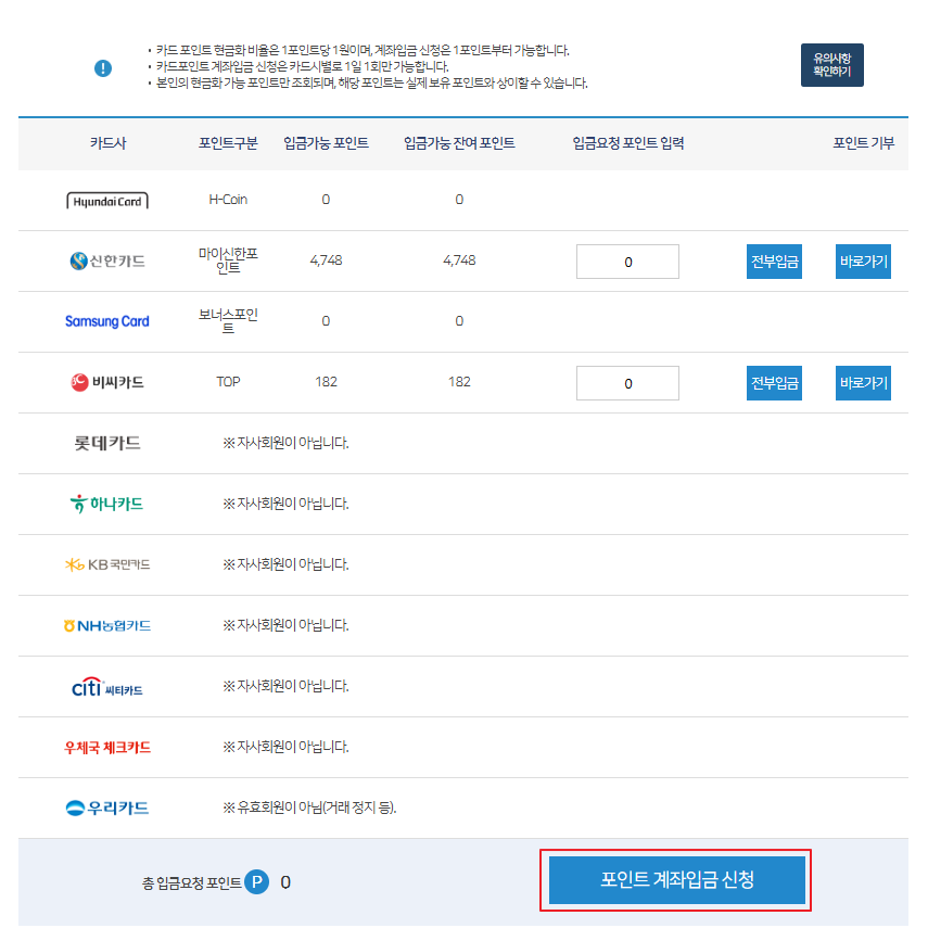 주의: 카드사마다 사용 가능한 포인트 종류가 다를 수 있으니, 본인의 카드사 정책을 확인하세요.