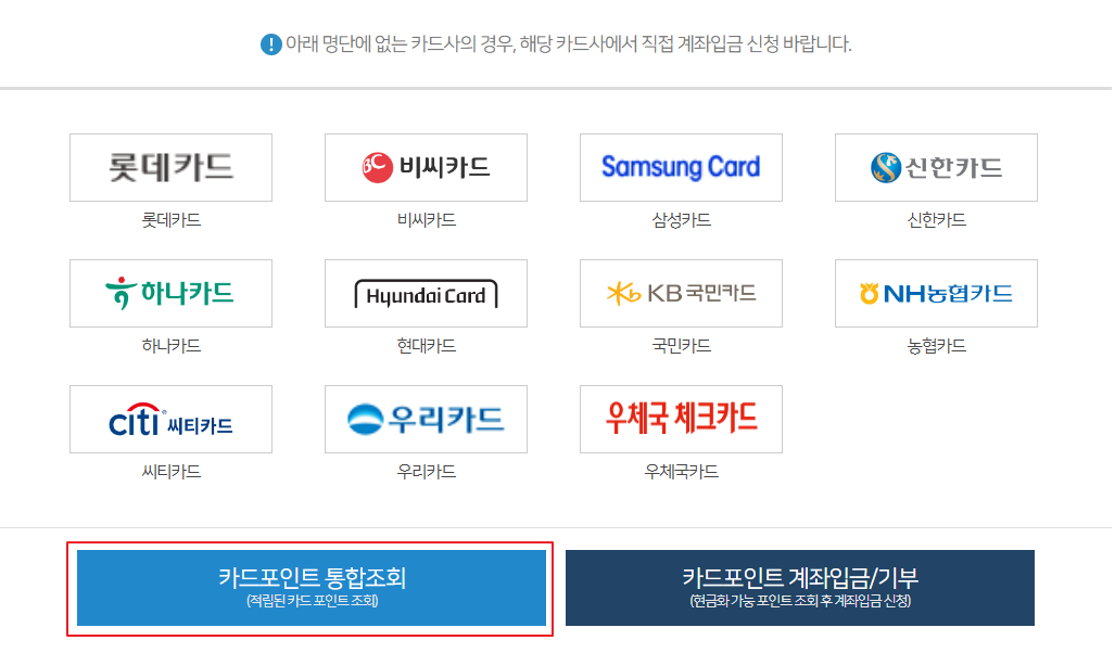 방법 1: 카드포인트 통합조회 서비스 이용하기