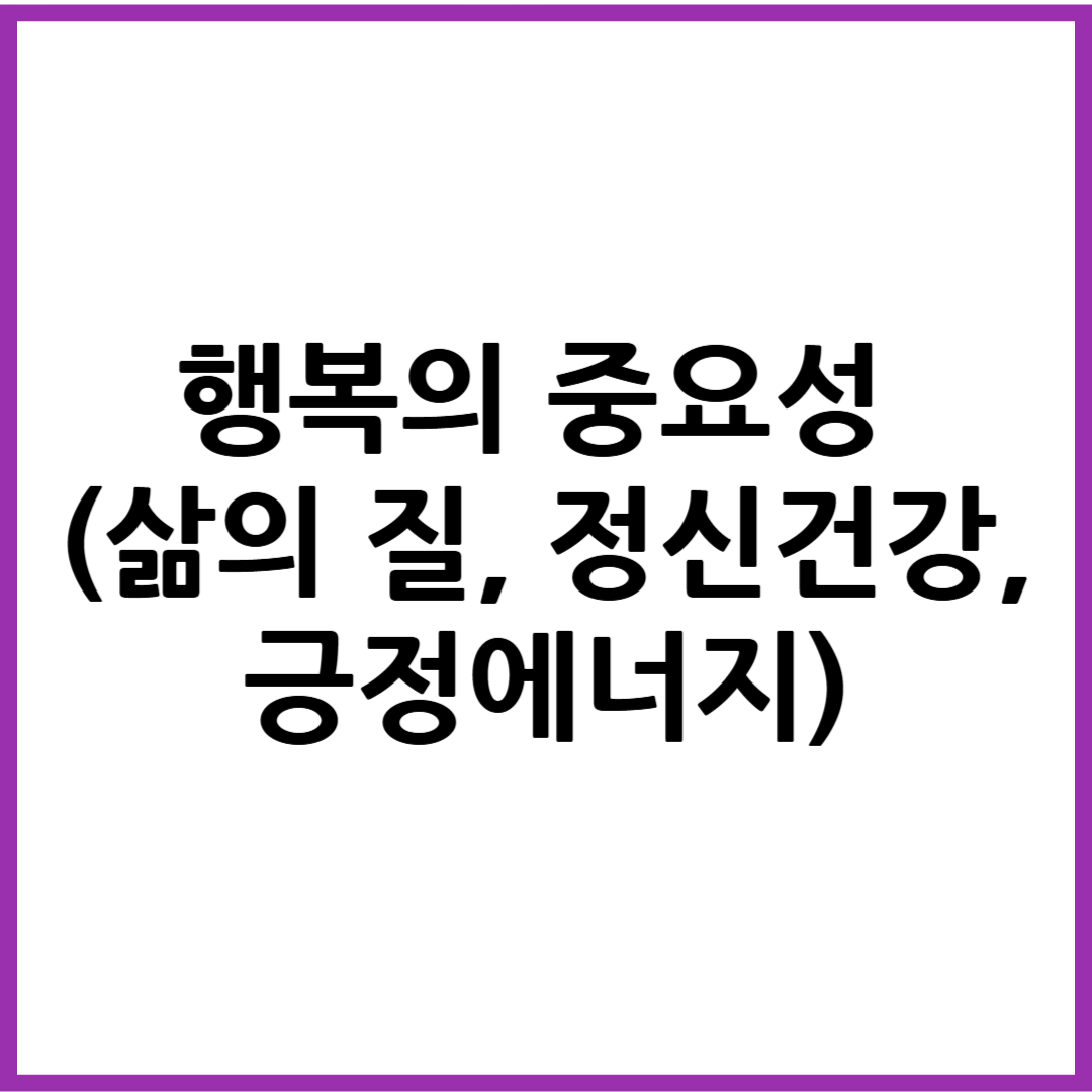 💡 행복은 삶의 질을 좌우한다