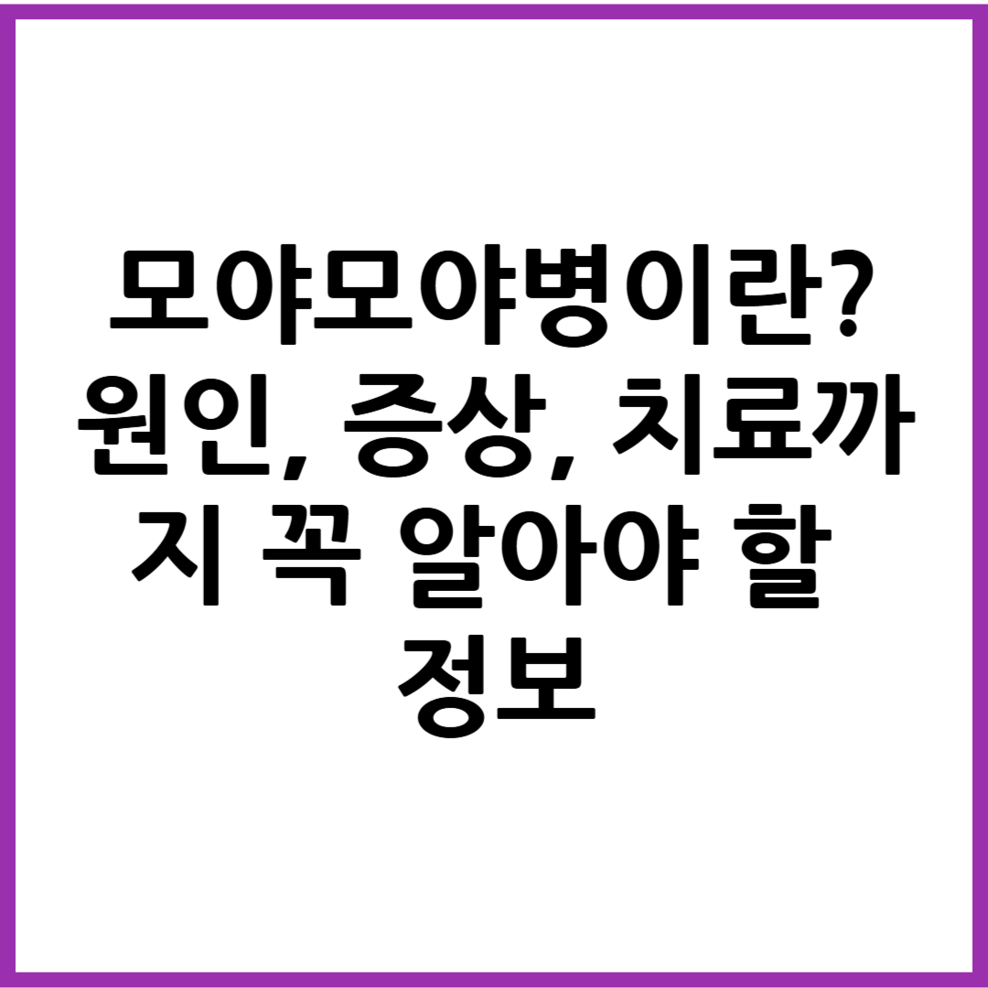이번 포스팅에서는 모야모야병의 원인, 증상, 진단, 치료 방법과 함께 환자와 가족들이 꼭 알아야 할 정보를 정리해 드립니다. 검색 최적화(SEO)를 고려해 관련 키워드도 포함하여 자세히 설명드릴게요.
