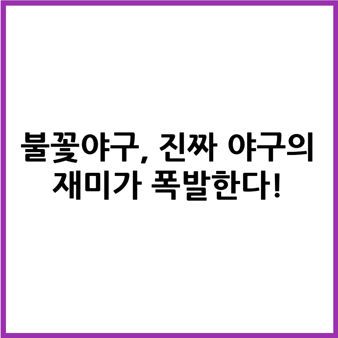 야구에 대한 흥미가 식었거나, 처음 접하는 사람이라도 '불꽃야구'는 재미있게 즐길 수 있는 문턱 낮은 콘텐츠입니다. 지금 바로 다음 경기 일정을 확인하고, 그 열정의 현장으로 떠나보세요!