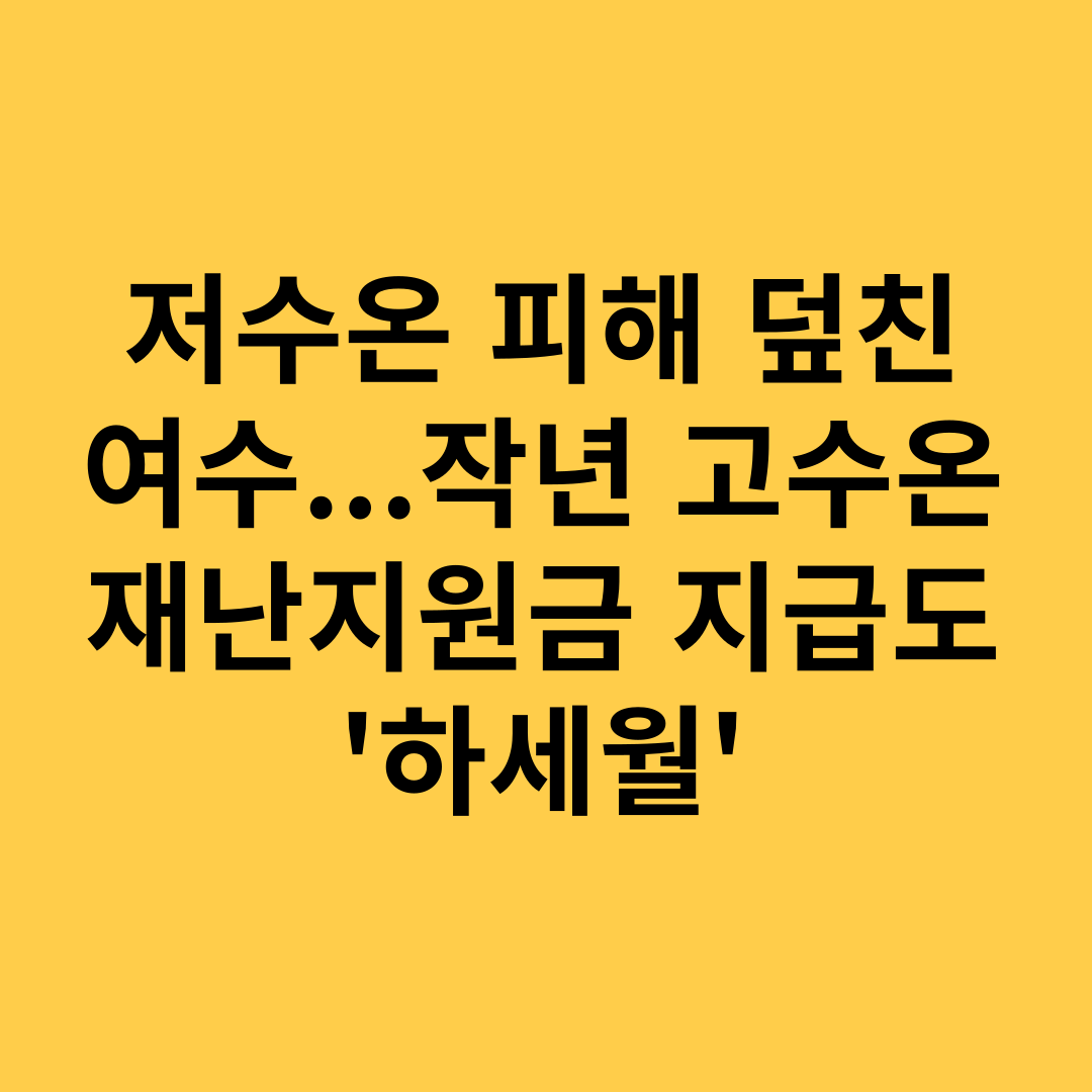 여수 지역 주민들이 느끼는 또 다른 큰 불만은 바로 작년 고수온 재난지원금 지급이 너무 지연됐다는 점입니다. 2024년 여름, 여수 지역에서는 고수온으로 인한 피해가 심각했던 가운데, 수산물 생산량 감소와 양식장 피해가 발생했습니다. 이에 따라 정부는 재난지원금을 지급하기로 했지만, 지원금 지급이 여러 차례 지연되었습니다.