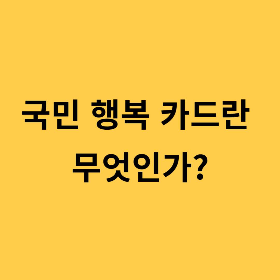 국민 행복 카드는 시민들의 웰빙과 행복을 증진시키기 위한 정부 지원 또는 조직 주도의 프로그램입니다. 이 카드는 시민들에게 다양한 혜택과 할인을 제공하여 신체적, 정신적, 사회적 웰빙을 증진하도록 돕습니다. 일반적으로 로열티 카드나 복지 카드처럼 기능하며, 신체 건강, 정신 건강, 사회적 참여 및 전반적인 삶의 만족도를 높이는 서비스, 이벤트, 활동에 접근할 수 있는 기회를 제공합니다. 이러한 카드는 보통 국가적 또는 지역적 차원의 노력을 통해 시민들이 긍정적인 생활 방식을 채택하도록 지원하는 일환으로 제공됩니다.